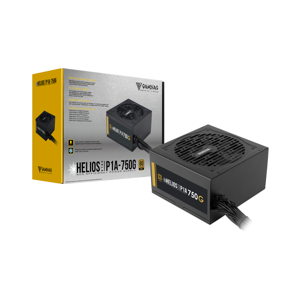GAMDIAS HELIOS P1A-750G, 750W, 80+ Gold, Aktif PFC, GAMING, ATX, Power Supply (PSU)