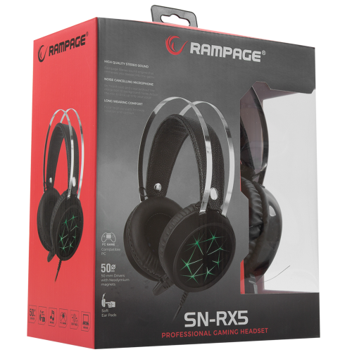 Rampage SN-RX5 Siyah Gaming Mikrofonlu Kulaklık ; ; Hoparlör üzerine monte edilmiş mikrofonu sayesinde maksimum performans sağlar. Mikrofon'un hoparlör üzerinde bulunması dış etkenlerden mikrofonu koruyarak alışılmış kablo üzerinde bulunan mikrofonlardan çok daha dayanıklı ve kullanışlıdır. Mikrofon çubuğu yukarı aşağı hareket edebilir şekilde özen ile tasarlanmıştır. Geçişli olarak tasarlanmış led ışığı karanlık ortamlarda mükemmel bir görsellik oluşturmaktadır.